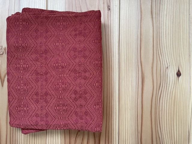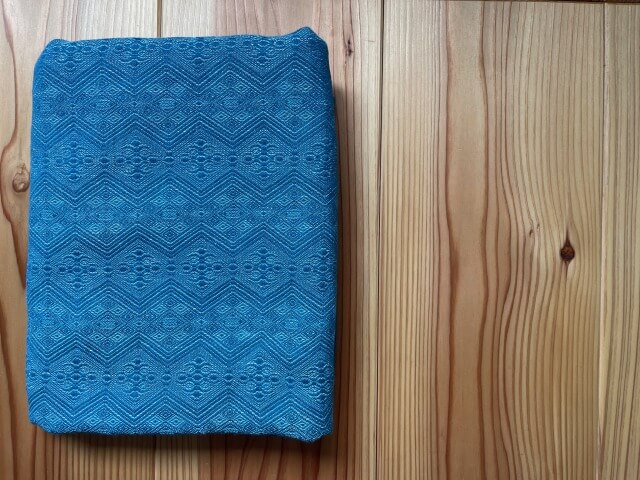 220g/㎡はそれなりの重量で、万人受けする布ではありません。私が主催しているベビーラップ講習会でも、この厚さの布の出番はあまりないだろうなと思ったので、ベビーラップではなくスリングを購入しました。スリングで220g/㎡なら、扱いは難しくありません。