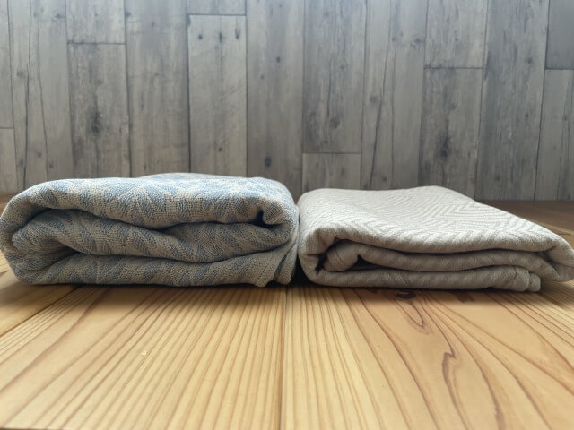 トリアスは最近ディディモスが積極的に新商品を発売しているシリーズで、二重織でふんわり柔らかく、通気性も高くて高温多湿な日本の気候にも適した生地です。